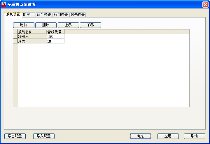 1、控制通空调水路对应的管线类型,同时可增加、删除管线类型的种类。