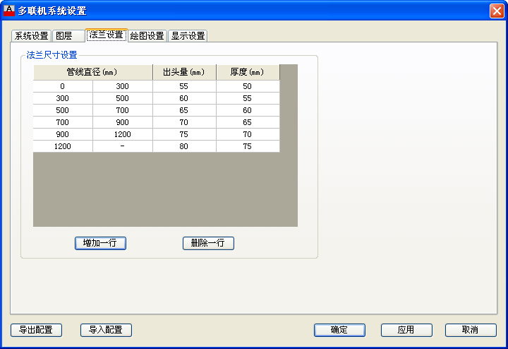 1、法兰尺寸设置,对不同直径的管线,可以设置不同的法兰出头量和厚度,设置后只影响新生成的法兰或者在带法兰的实体更新时同步修改法兰。