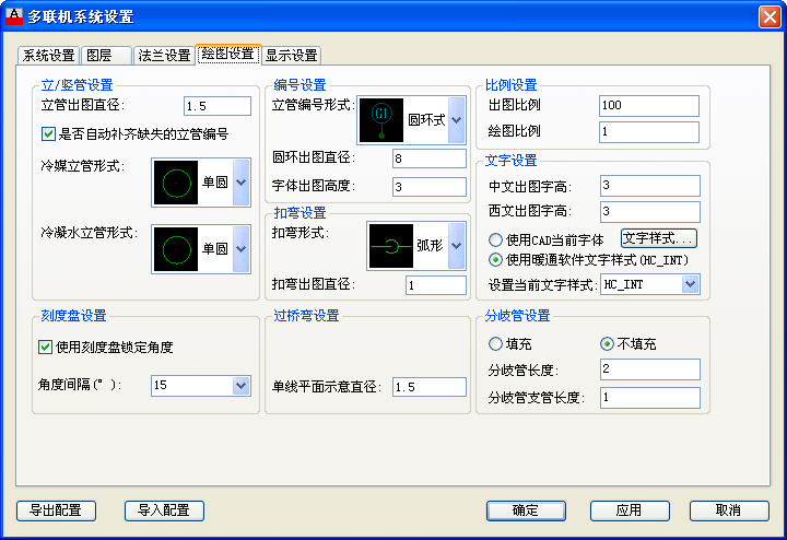 2、设置立管标注的标注形式(包括圆环式1、圆环式2和引出时),设置圆环直径和字体高度;