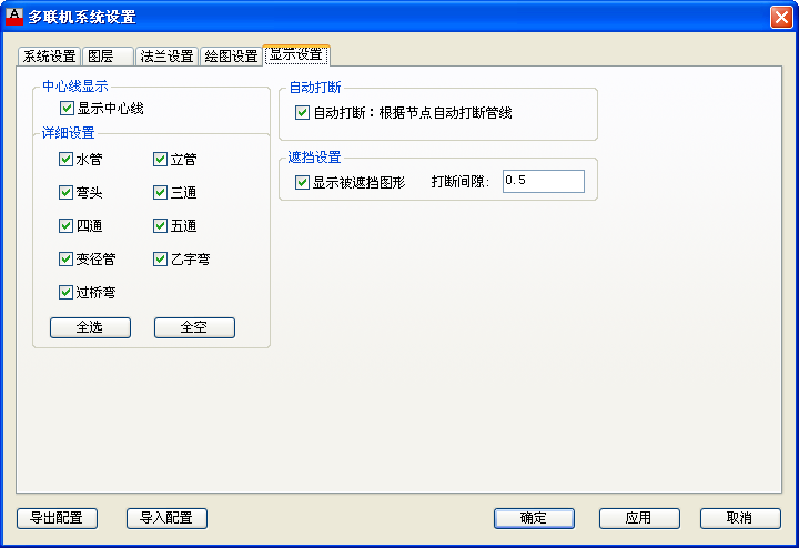 1、设置中心线的显示,如显示水管、弯头、三通等图形的中心线。
